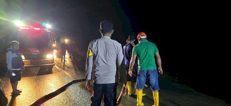 "Dan menurut pengakuan warga di sekitar lokasi, ada beberapa pengendara yang mencoba melintas terjatuh karena jalanan yang licin dan berlumpur sehingga tadi kami mengimbau warga untuk melewati jalan alternatif yakni melalui jalur sabuk merah Desa Dafala dan desa Takirin. Alhamdulillah, dengan usaha kami bersama rekan-rekan dari BPBD dan Damkar, jalan raya sudah kembali bersih dan bisa dilalui pengendara"tambahnya.