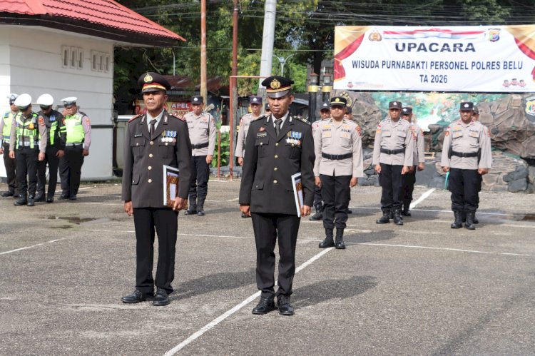 Kepolisian Resor Belu pada jumat (06/02/2026) pagi menggelar upacara wisuda purna bakti bagi AKP Purnawirawan I Ketut Karnawa, SH dan AKP Purnawirawan Yadokus Hum Feka yang telah mengakhiri masa tugasnya.