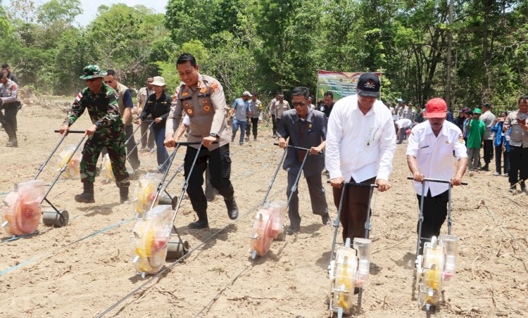 Dari Tapal Batas Wujudkan Swasembada Pangan, Kapolres Belu Bersama Forkopimda dan Kelompok Tani Tanam Jagung Kuartal IV Tahun 2025
