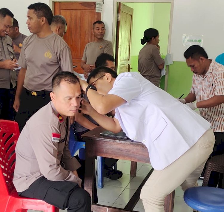 Rikkes berkala yang diadakan oleh Bidang Dokter dan kesehatan (Bid Dokes) Polda NTT bersama tim dari Laboratorium Klinik Asa Kupang, dilaksanakan di Klinik Pratama Polres Belu..