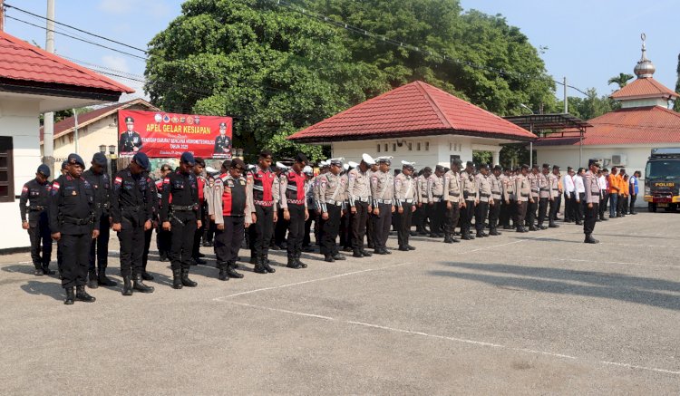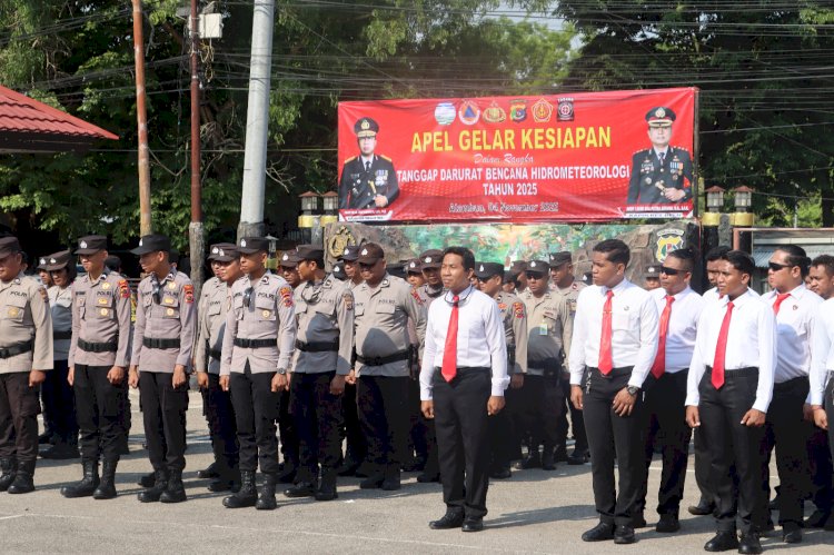 Kepolisian Resor Belu bersama pemerintah kabupaten Belu, TNI dan Brimob, melaksanakan Apel Gelar Kesiapan dalam rangka tanggap darurat bencana Hidrometeorologi Tahun 2025, selasa (4/11/2025).