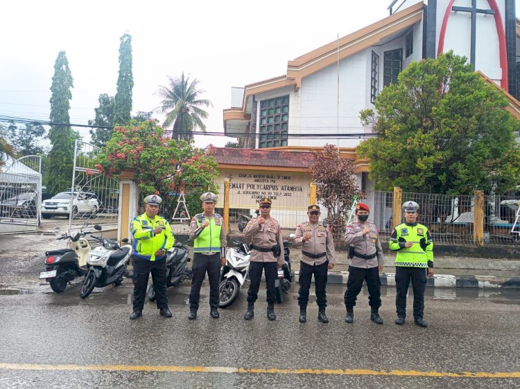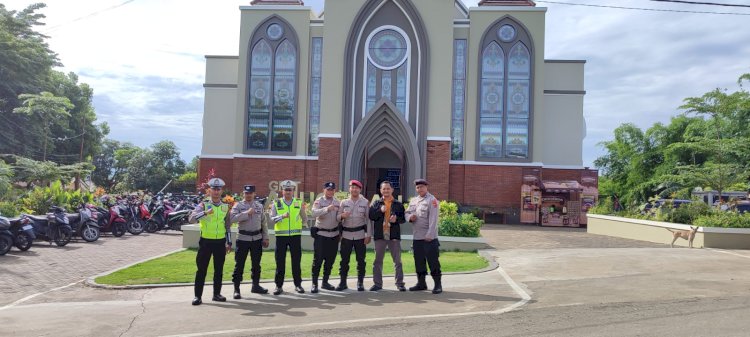Guna menjamin kondusifitas dan kenyamanan umat sebelum, saat dan sesudah umat beribadah, personel Polres Belu yang terlibat dalam operasi Lilin Turangga 2025, turun melaksanakan pengamanan ibadah disejumlah gereja besar yang ada di Atambua.