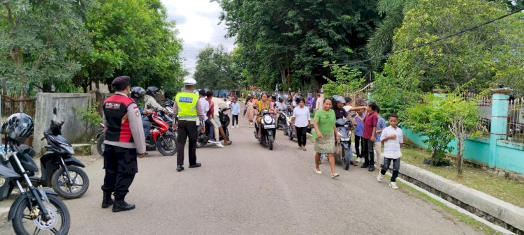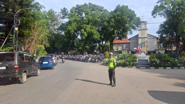 Guna menjamin kondusifitas dan kenyamanan umat sebelum, saat dan sesudah umat beribadah, personel Polres Belu yang terlibat dalam operasi Lilin Turangga 2025, turun melaksanakan pengamanan ibadah disejumlah gereja besar yang ada di Atambua.