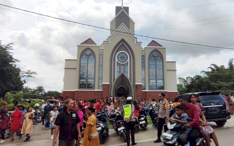 Di tengah pelaksanaan ibadah misa Natal, Kapolres Belu, AKBP I Gede Eka Putra Astawa, S.H.,S.I.K berkeliling ke sejumlah gereja di Kota Atambua, kabupaten Belu, kamis (25/12/2025).