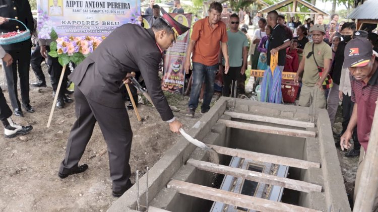 Upacara Pemakaman Almarhum AIPTU Antoni Pereira yang dipimpin langsung Kapolres Belu, berlangsung di Pemakaman umum Katolik di Dusun Kota Sukaer, Desa Leuntolu, kecamatan Raimanuk, kabupaten Belu.