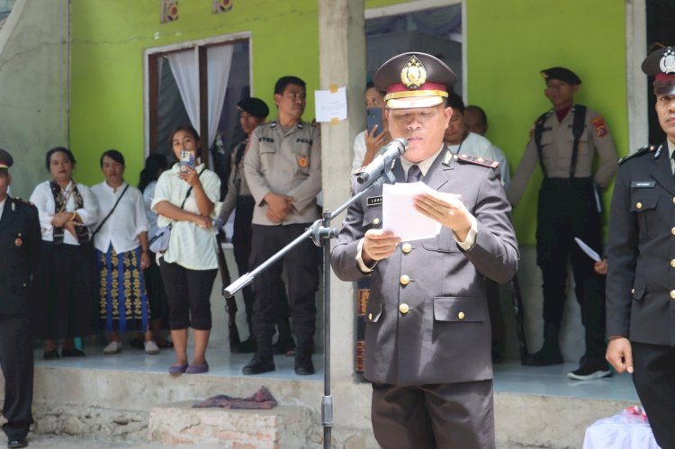 Membacakan amanat tertulis Kapolres Belu, Wakapolres selaku Inspektur Upacara mengungkapkan,selama bertugas di Kepolisian khususnya di Polres Manggarai Timur, Almarhum telah melaksanakan tugasnya secara baik dimanapun ia ditempatkan.