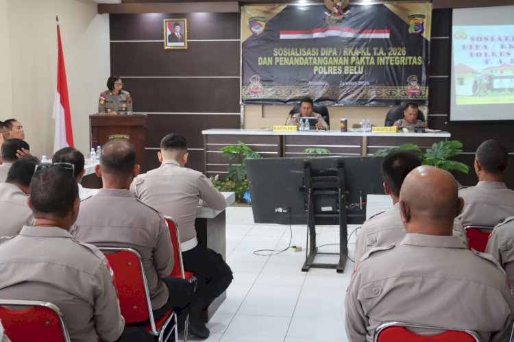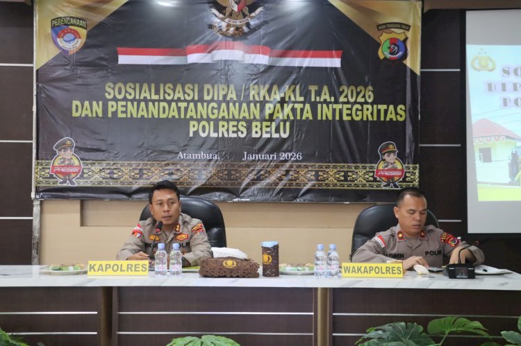 Mengawali tahun 2026, Kepolisian Resor Belu menggelar sosialisasi Daftar Isian Pelaksanaan Anggaran (DIPA) serta Rencana Kerja (Raker) dan Anggaran Kementerian Negara/Lembaga (RKA-KL) tahun anggaran 2026, di Aula Wira Satya lantai II Polres Belu, senin (12/01/2026).