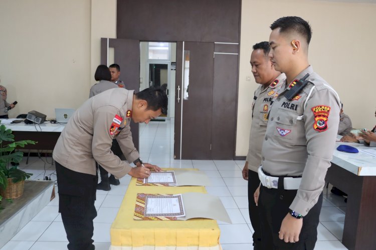 Penandatanganan Pakta Integritas dilakukan oleh Kapolres Belu beserta perwakilan Kasubsatker yakni Kasat Lantas dan Kapolsek Tasifeto Tinur.
