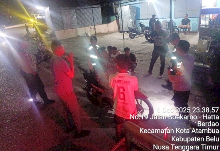 Guna mencegah dan meminimalisir terjadinya gangguan kamtibmas, personel gabungan Polres Belu (piket fungsi), menjalankan rutinitasnya di malam minggu dengan melakukan patroli di Kota Atambua, sabtu (6/12/2025).