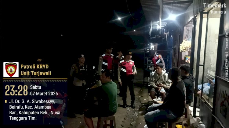 Kegiatan patroli dialogis yang kembali di helat sabtu (07/03/2026) malam sekitar pukul 22.00 wita hingga menjelang waktu Sahur untuk umat Muslim yang berpuasa, di awali dari Mapolres Belu menuju kompleks pasar lama, gereja Polycarpus, KM 3 jurusan kupang, pasar baru dan kompleks Tini.