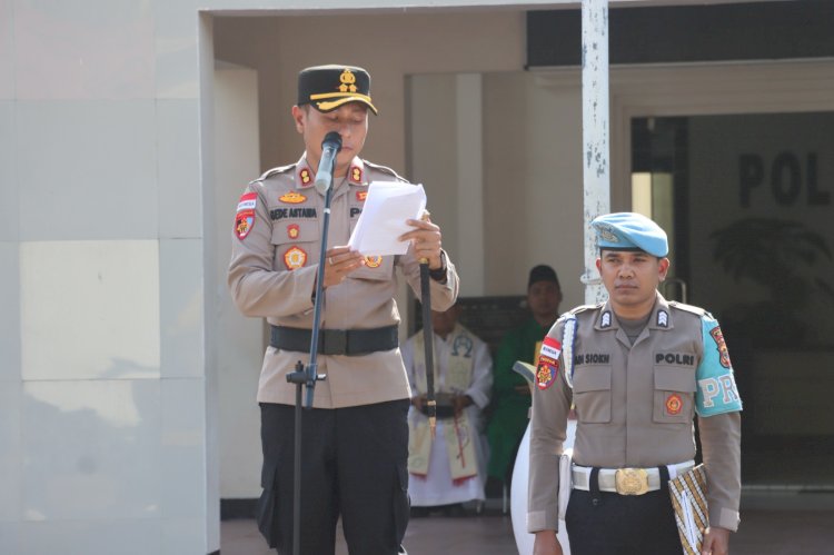 Upacara yang digelar dilapangan apel Polres Belu dihadiri Wakapolres Belu, KOMPOL Lorensius, S.H.,S.I.K, para Kabag, Kasat serta Kapolsek jajaran.