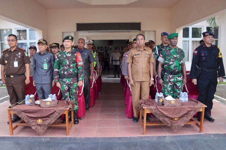 Mengawali amanat Kapolda NTT Irjen Pol. Dr. Rudi Darmoko, S.I.K., M.Si., Kapolres Belu menyampaikan apresiasi dan terima kasih setinggi-tingginya kepada seluruh jajaran TNI–Polri, pemerintah daerah, serta seluruh stakeholder atas keberhasilan pengamanan perayaan hari raya nyepi dan idul fitri 1447 hijriah yang berlangsung aman, tertib, dan kondusif.