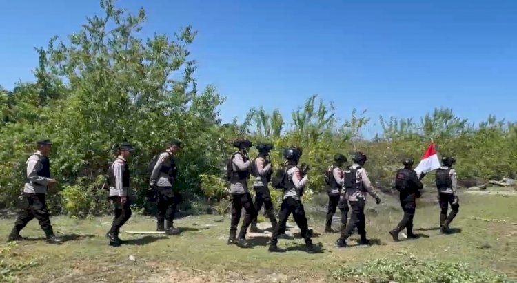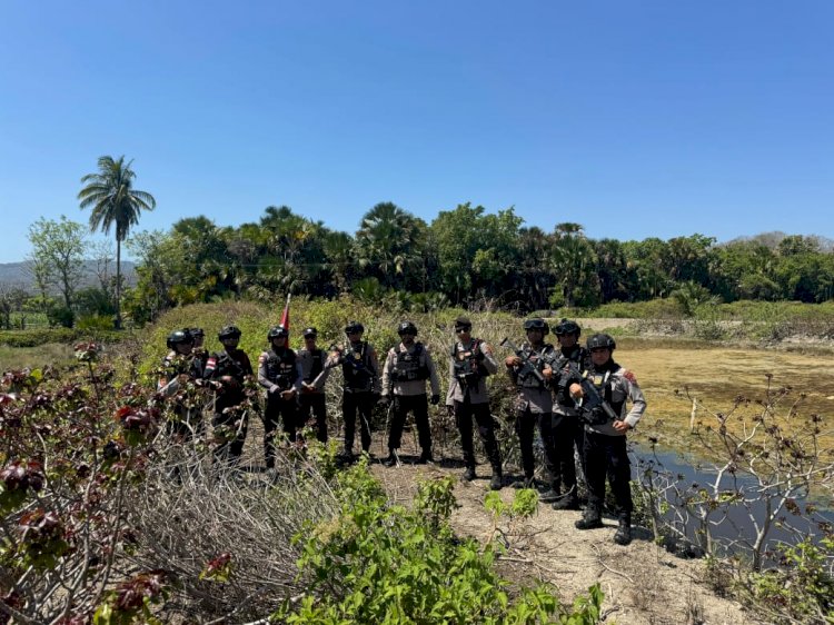Turjawali Samapta Polres Belu bersama Pos Motaain dan Brimob Gelar Patroli Jalan Kaki, Jamin Keamanan di Perbatasan RI-Timor Leste