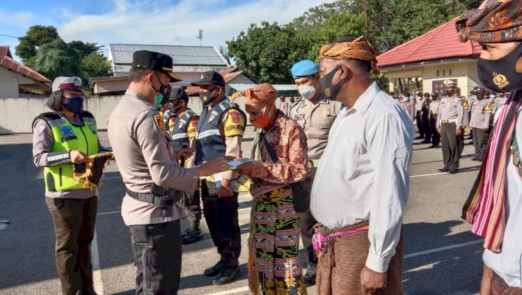 Kapolres Belu, AKBP Khairul Saleh, S.H.,S.I.K.,M.Si memberikan penghargaan kepada 3 (tiga) tokoh masyarakat kabupaten Belu, yang telah berkontribusi besar dalam pengembangan sarana prasarana kepolisian.
