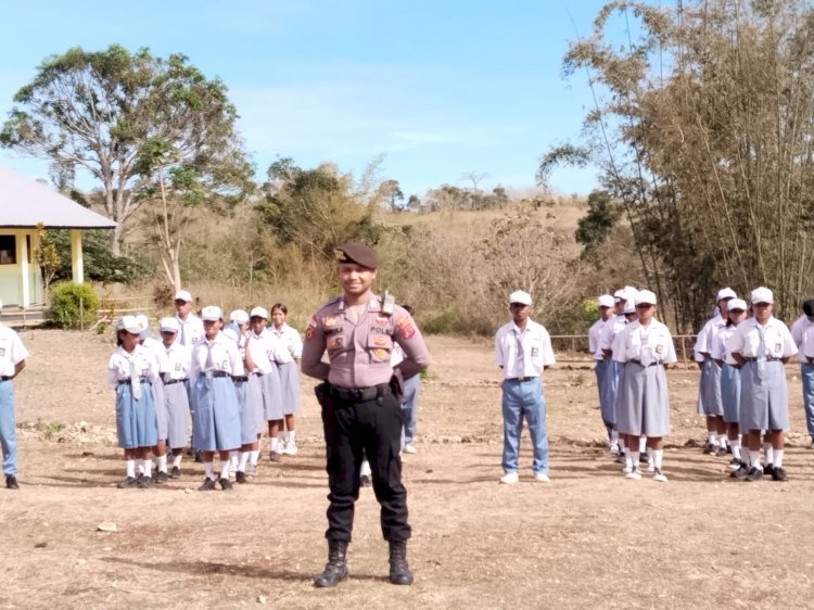 Teranyar, Polsek Lasiolat melalui Kanit Binmas, AIPTU Haris Cahyono turun menjadi Pembina Upacara di SMAN Lasiolat, Desa Dualasi, kecamatan Lasiolat, kabuapten Belu, senin (29/9/2025).