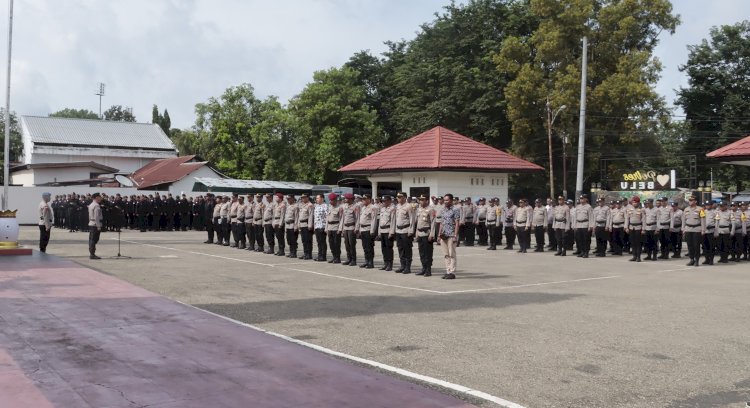 Hadir juga Perwira Staf Polres Belu dan Brimob Yon A Pelopor serta peserta apel yang terdiri dari personel gabungan Polres Belu dan 1 kompi BKO Brimob Polda NTT.