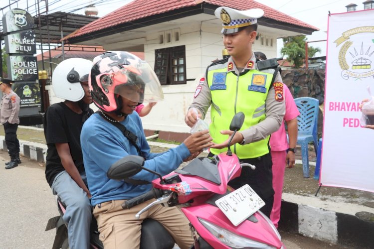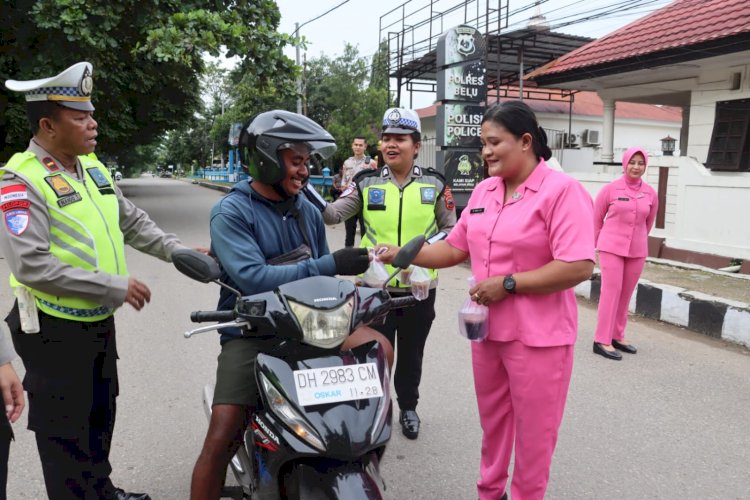 Dengan penuh humanis, Wakapolres Belu bersama Wakil Ketua Bhayangkari serta personel Lantas dan sejumlah pengurus Bhayangkari membagikan Takjil yang di selingi dengan imbauan tertib berlalu lintas.